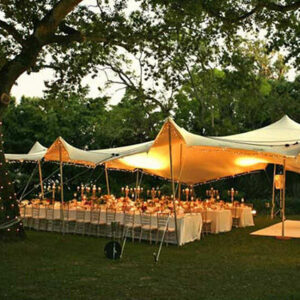 We offer a host of staging possibilities and upgrades, such as our Flex stretch tent (20 ft. x 40 ft.), Trillium XL Hammocks, bell tents and outdoor lounge.